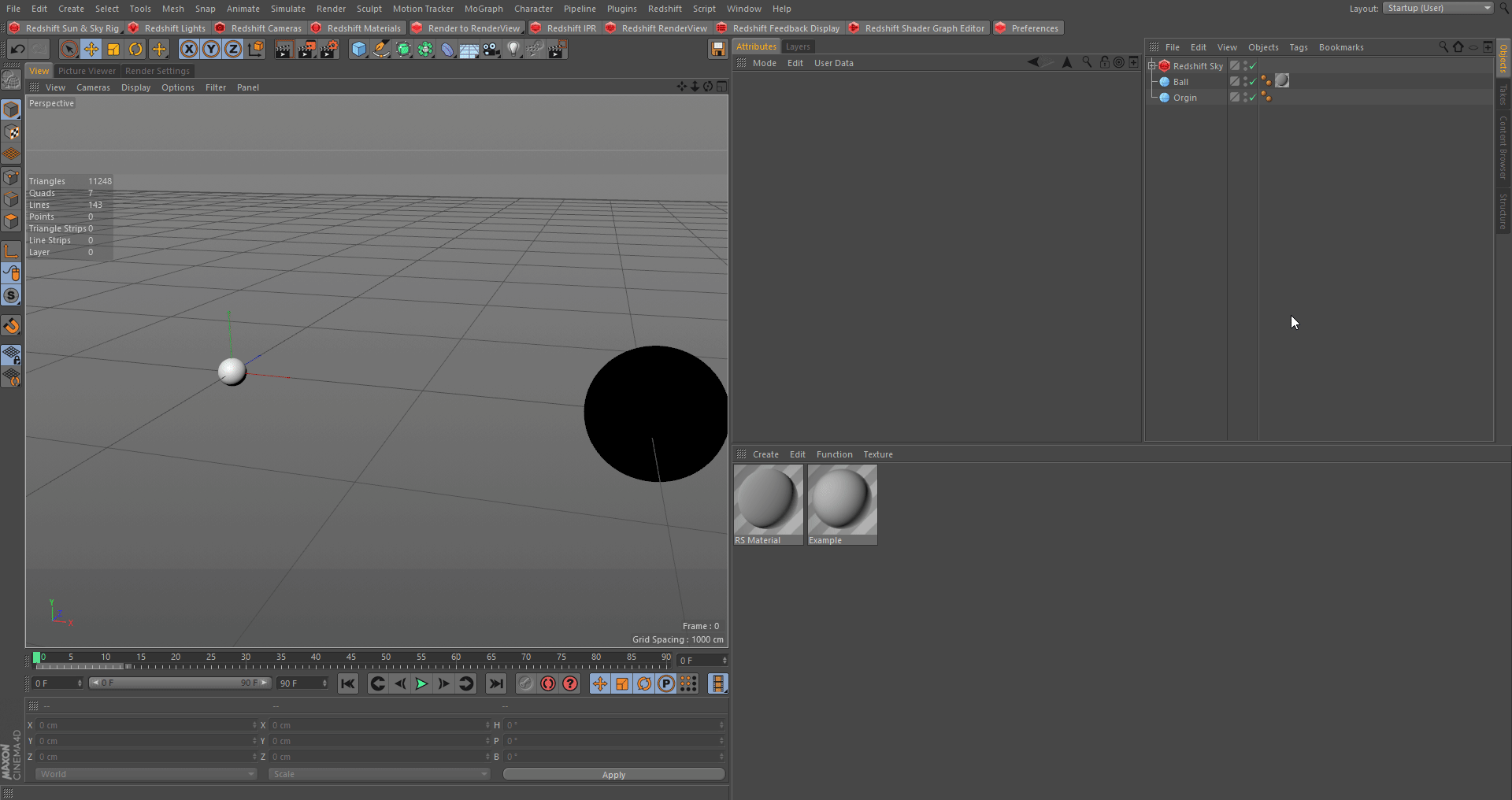 To start off we have a simple Redshift Sky setup, with an animated sphere moving towards a stationary sphere.