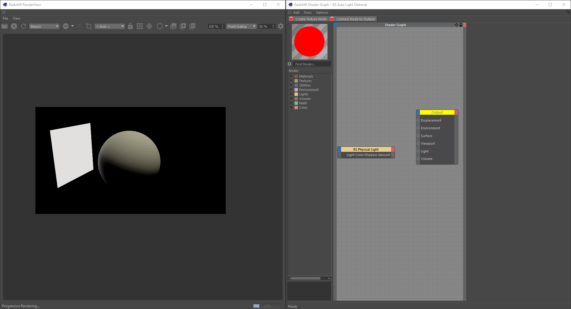 Light material output. Used with nodes from the light category. These materials are applicable only to Redshift Lights. Light materials should not have any other outputs connected.