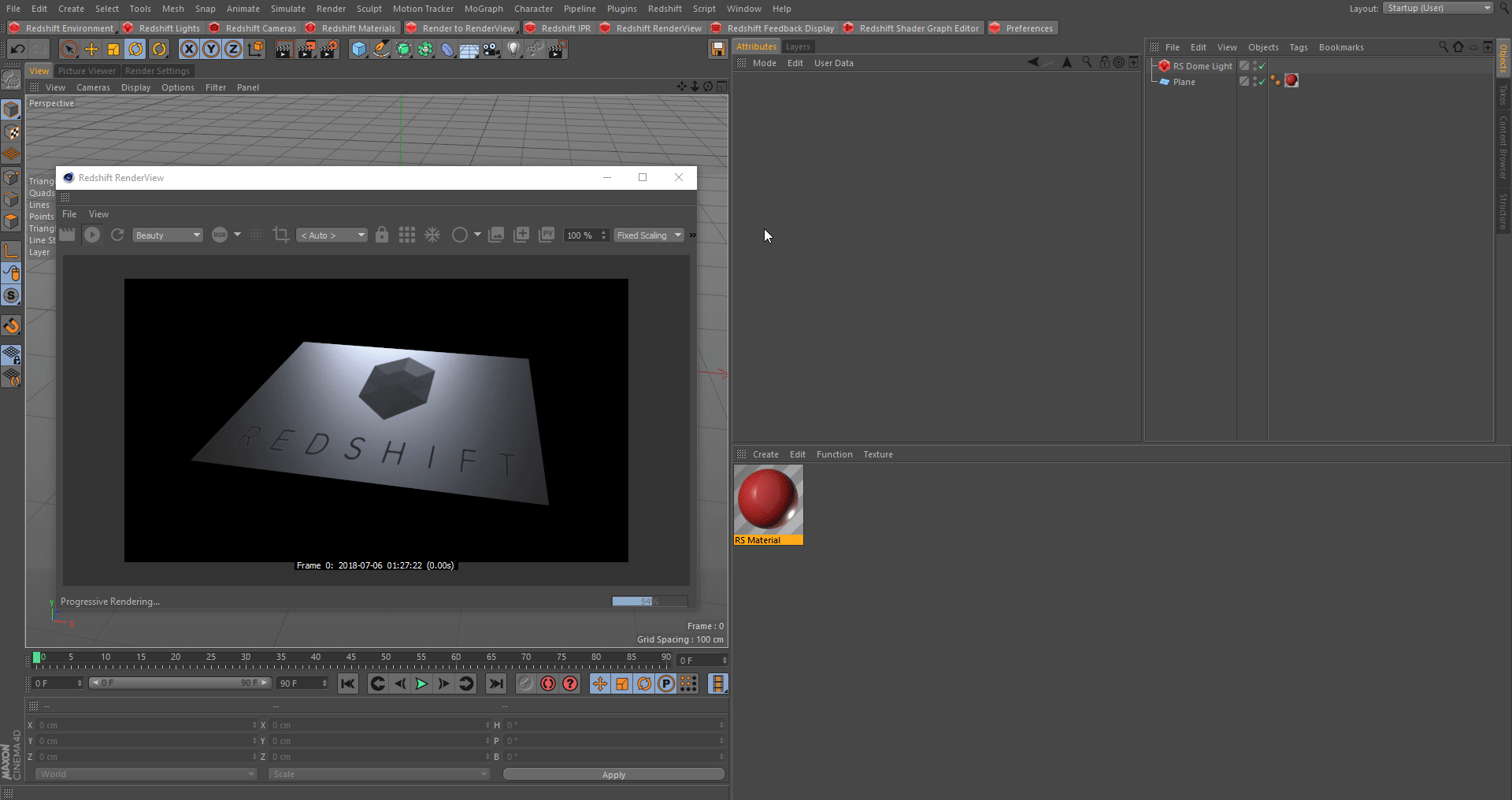 Redshift uses the material preview scenes that are provided with Cinema 4D.Redshift only allows for a single rendering session at any given time, so the material preview will update after any active render has finished or is suspended.