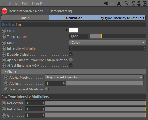 - Ray-Traced Opacity – the alpha value describes opacity, which can be used to make the material transparent