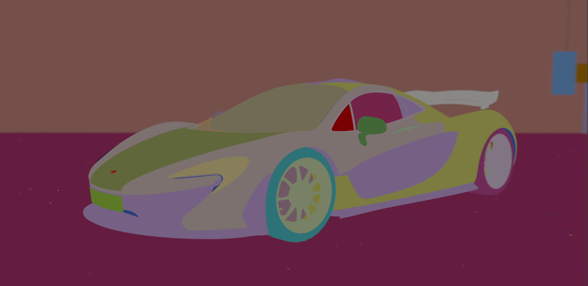 In the example below User Attributes were applied to specific objects and each object that we wanted to have its own matte was also given an appropriate individual string name to group the objects by. Here we have the tires, floor, wall, license plate, and front windshield & front light in their own matte groups. This allows us to easily customize the objects and names for our mattes using custom attributes.