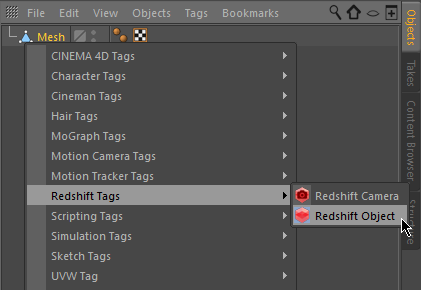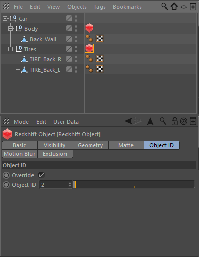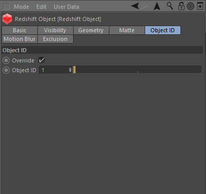 Redshift Object ID controls inside of the Redshift Object Tag for the selected object.
