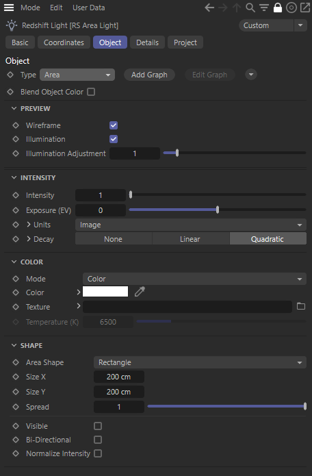 | Area Shape: Rectangle | Disc | Sphere | Cylinder | Mesh |