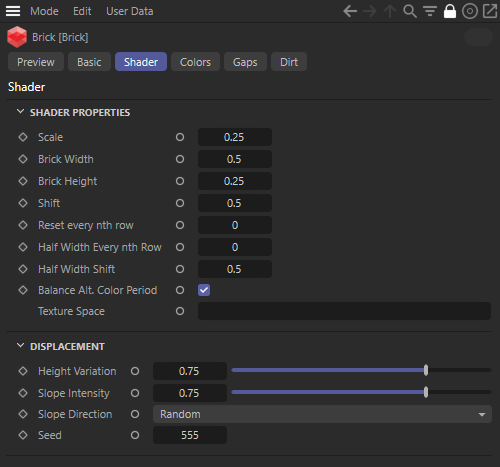 Scales the brick pattern uniformly. Higher values result in larger bricks while lower values result in smaller bricks.