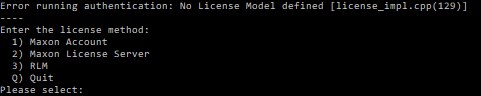 When starting the Commandline Renderer for the first time, it must either be connected directly with the Maxon user account or indirectly via the License Server.