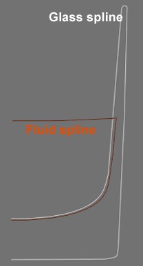 Scale the spline used to model the fluid and place it so it extends slightly into the glass.