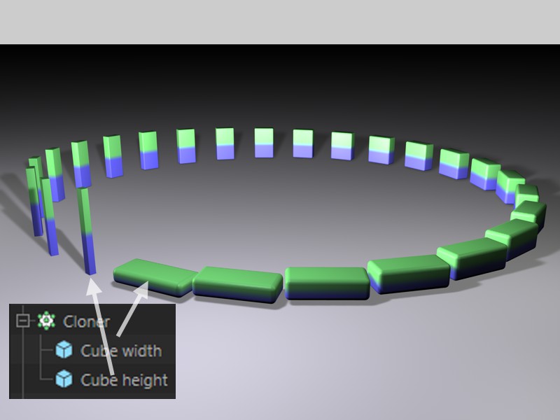 In this mode, the Cloner object's Child objects are placed in a circle around the center of the Cloner object.