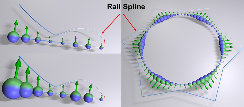 Deactivate this option if the clones should align themselves freely on the railspline. Otherwise, their Z-axes are tangentially linked to the main spline.