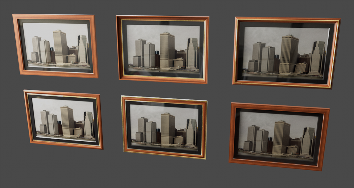 Dieses Grundobjekt erleichtert die Erstellung klassischer Bilderrahmen, z. B. für eine Galerie oder die Dekoration von Wohnräumen. Dabei lassen sich verschiedene Designs fertig abrufen, die Größenverhältnisse individuell anpassen und auch Selektionen direkt für die Zuweisung von Materialien nutzen.