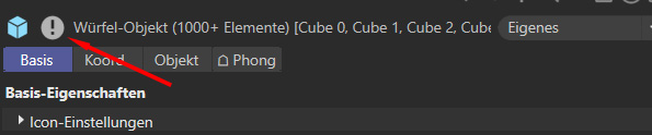 Ist diese Grenze erreicht und Sie selektieren mehr Nodes, wird im Attribute-Manager dieses Warnzeichen angezeigt: