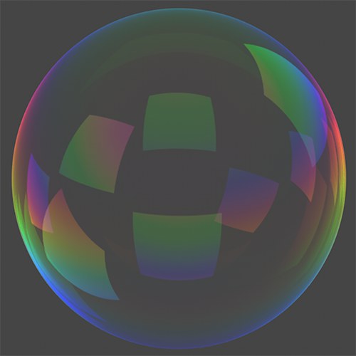 Schillernde Seifenblasen (hier mit variierender Dicke) oder Antireflexbeschichtungen (beachten Sie hier den Fingerabdruck, der seinerseits ein Dünnfilm ist) auf Linsen sind ein Leichtes für den Dünnfilm-Shader.
