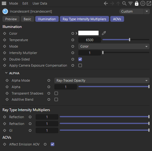 | Alpha Mode: Ray-Traced Opacity Alpha: 0 - 1 |