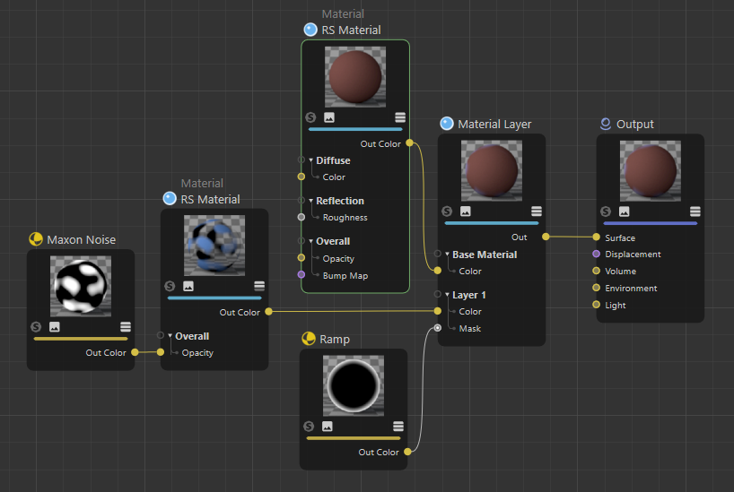The Material Layer node outputs a combination of two materials.