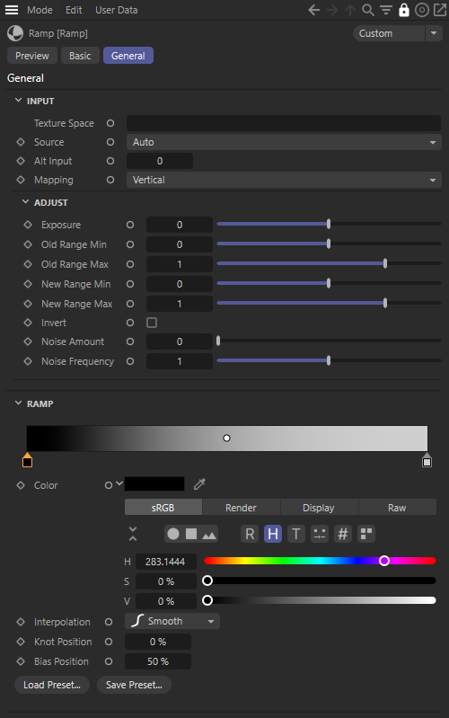 This scales the amount of noise that will be applied to the ramp coordinate to add variation to the texture. A value of 0.0 means no noise is applied, with higher values meaning stronger noise.