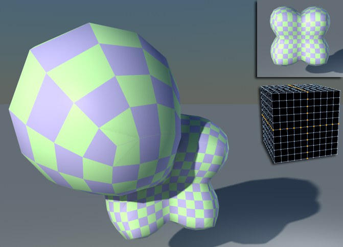 To turn a normal object into a Soft Body, all object points will be regarded as small masses that are connected via 3 types of Springs (in the following also referred to as "standard spring types"). Each spring type can be adjusted separately and fine-tuned at point level via Point Selection tag or Vertex