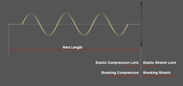 Brief calculation example: You have a spring with a Rest Length of 100 cm and an Elastic Stretch Limit of 20 cm. You now pull the spring to a length of 150 cm. After the force is removed, the spring swings by its new rest length of 150cm - 20cm = 130cm.