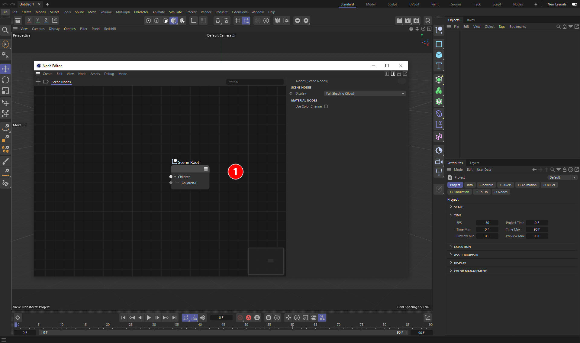 Just like classic, parametric basic objects, generators, deformers and modeling commands, selected Nodes also provide settings and options that can be viewed and operated in the Attribute Manager. The Attribute Manager is therefore also required to operate and configure Nodes.