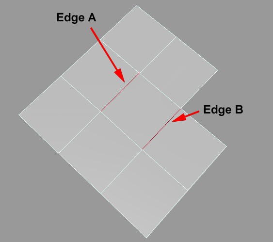 When breaking individual edges, the effect will only occur if the end points of the edge are surrounded by connected polygons (Break Phong Shading – menu). In the following illustration, the effect of breaking will be visible for edge A, but not for edge B.