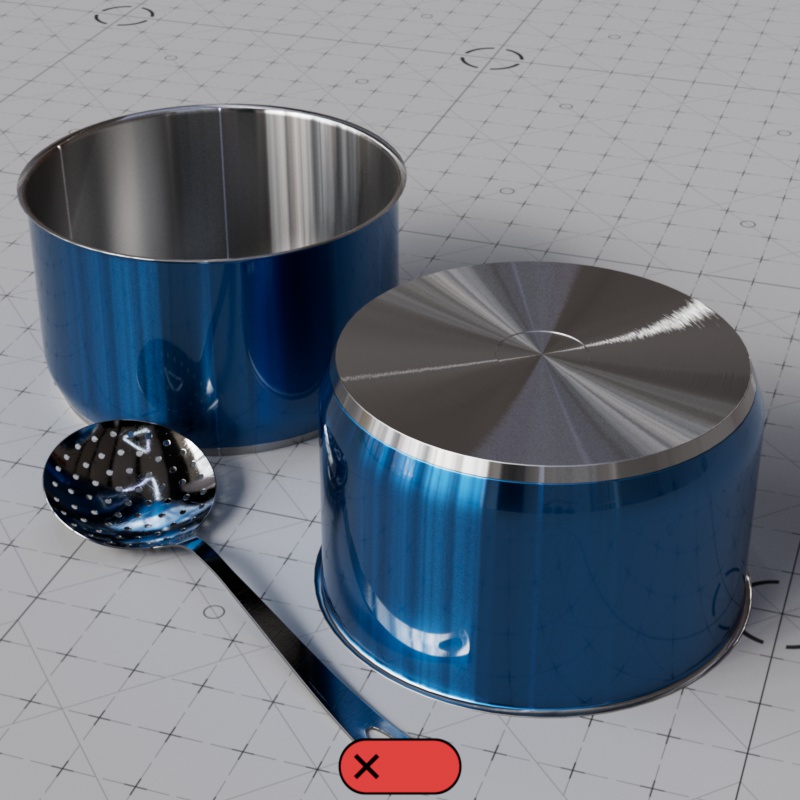In the example below, note how the reflection of the lights react to the direct scale in the blue coat, but the reflection of the slotted spoon and environment is only affected by indirect scale.