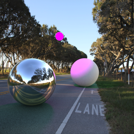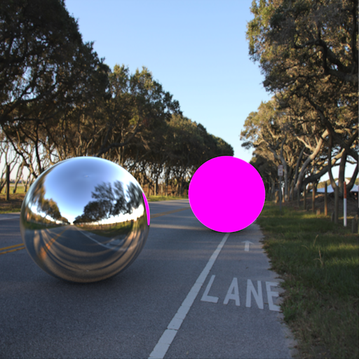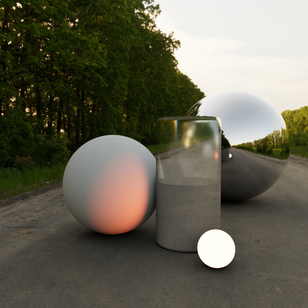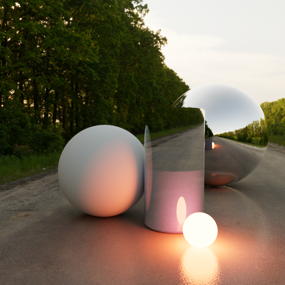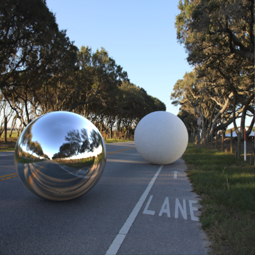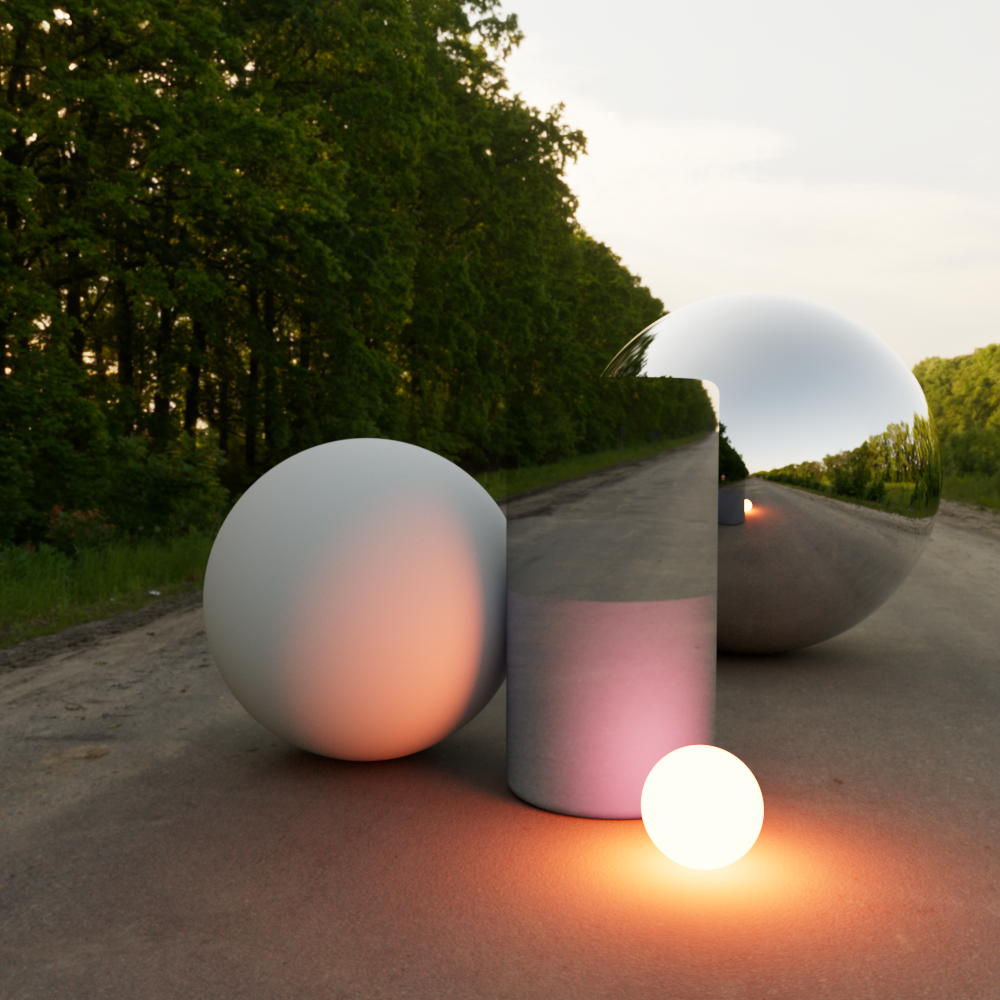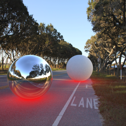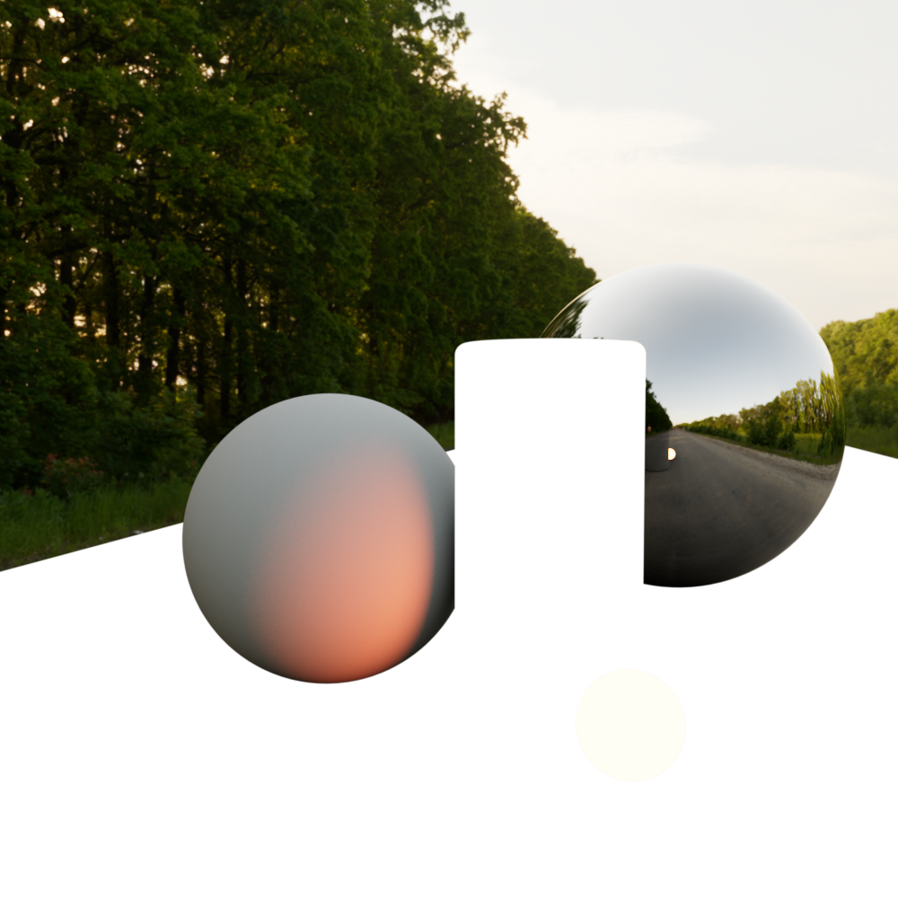Below is an example of a simple scene containing two spheres, a reflective plane and a dome light with back-plate enabled for the background image.