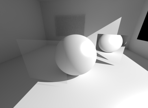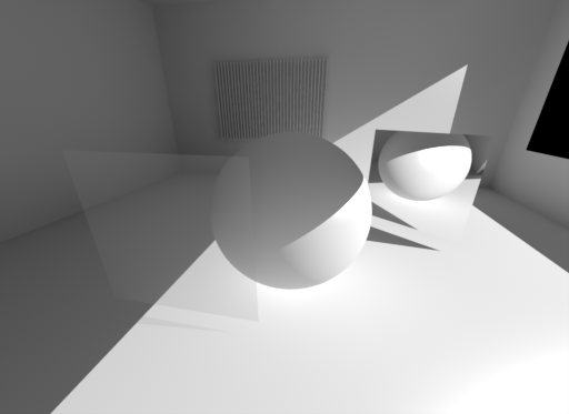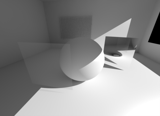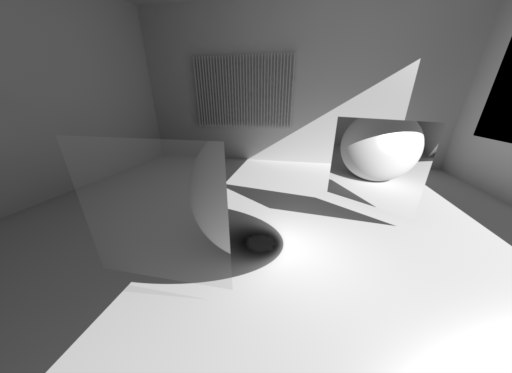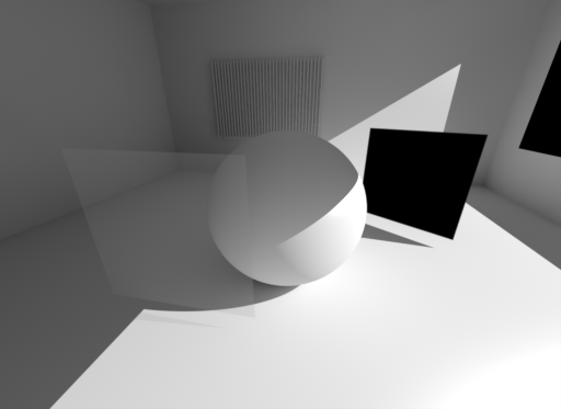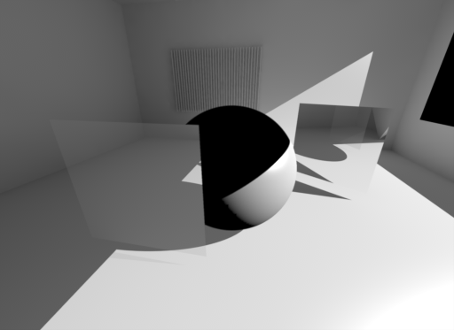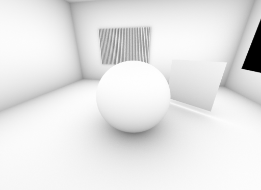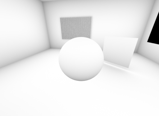 Primary Ray Visible On, Secondary Ray Visible Off. The sphere is invisible for all effects except camera rays and shadows. Notice the lack of GI on the sphere. |