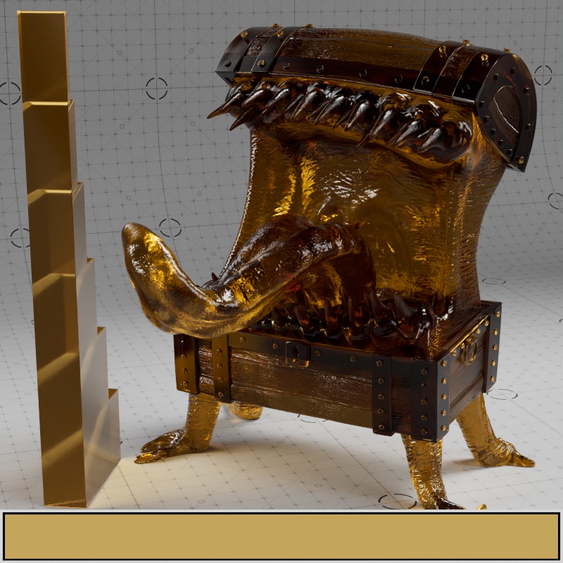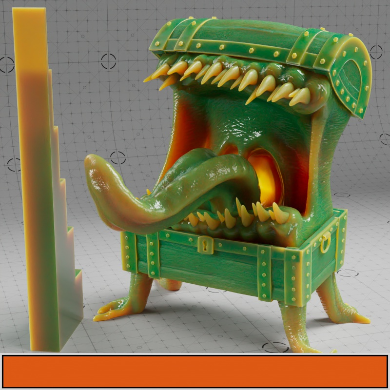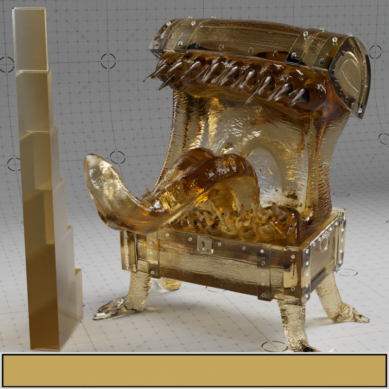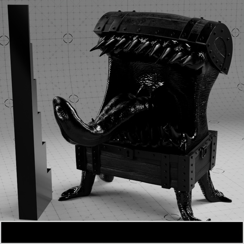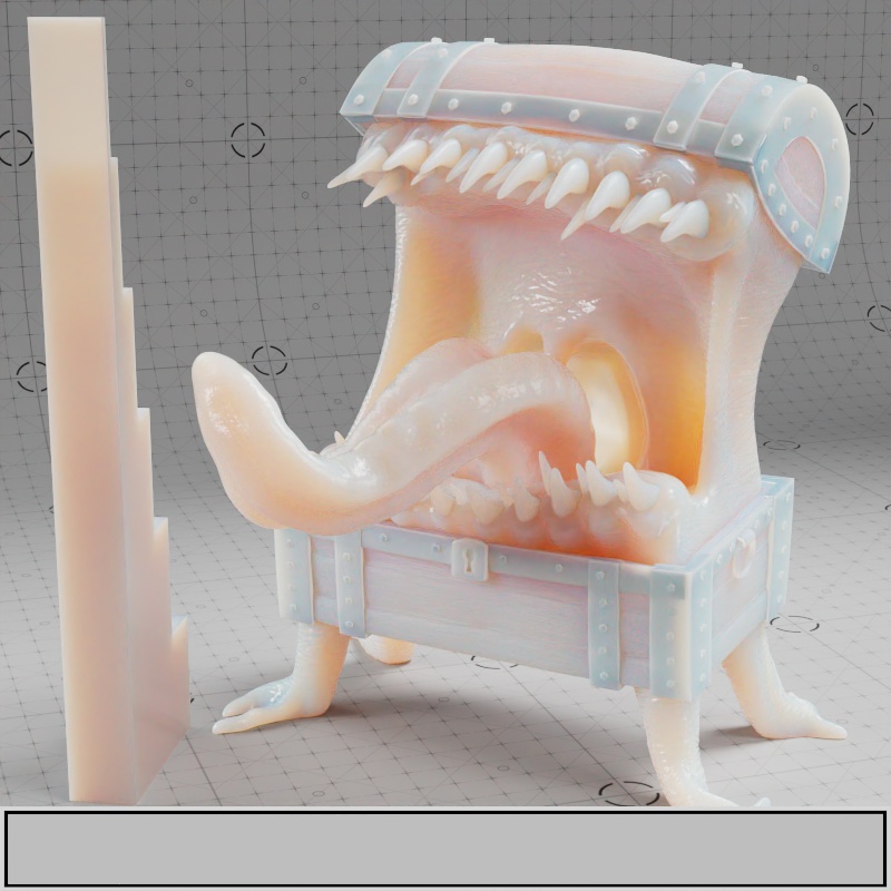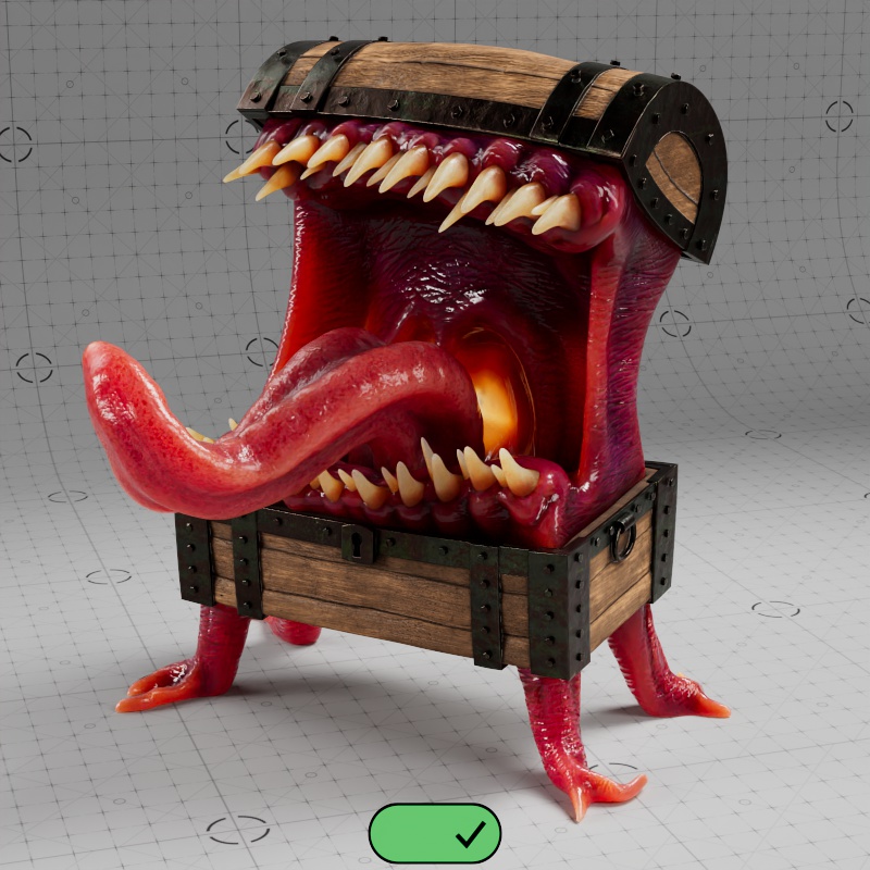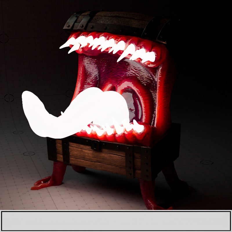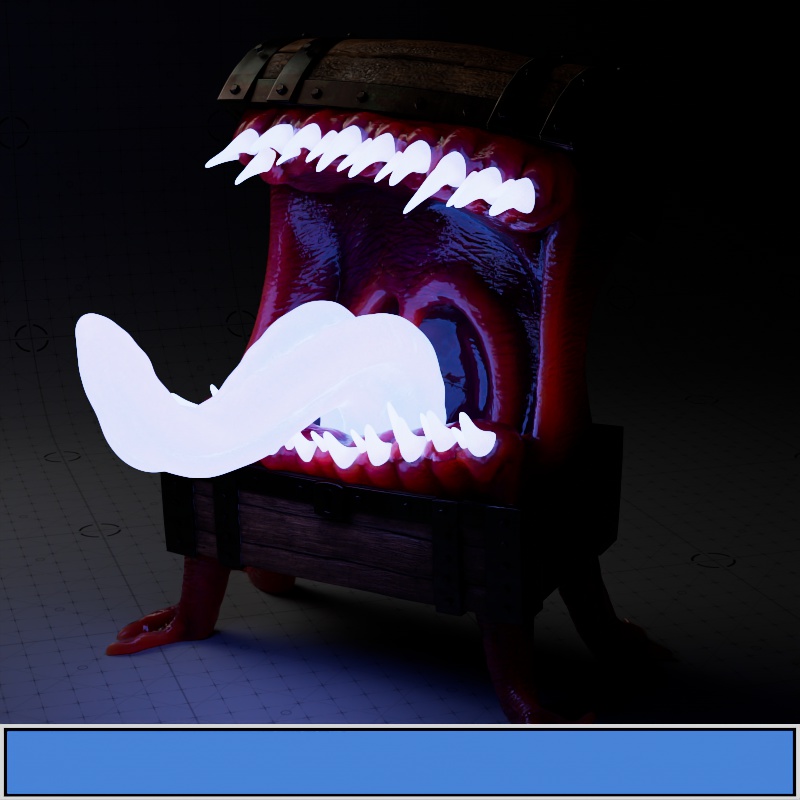 In the examples using the full texture setup, only the Mimic's body, teeth, and tongue have subsurface scattering. Additionally, where metalness is used, no subsurface scattering can appear.