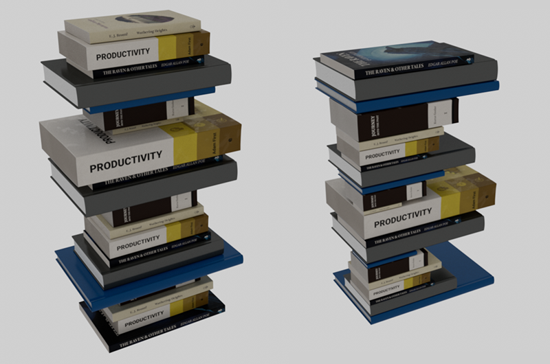 Diese Verteilung kann direkt über die Durchsuchen-Schaltfläche eines Klon-Objekts geladen werden, wenn das Klon-Objekt den Fortgeschritten-Modus verwendet. Die Stack Distribution eignet sich immer dann, wenn Objektkopien gestapelt dargestellt oder abhängig von ihren Abmessungen exakt aufgereiht werden sollen. Denken Sie z. B. an einen Stapel von Magazinen oder Büchern.