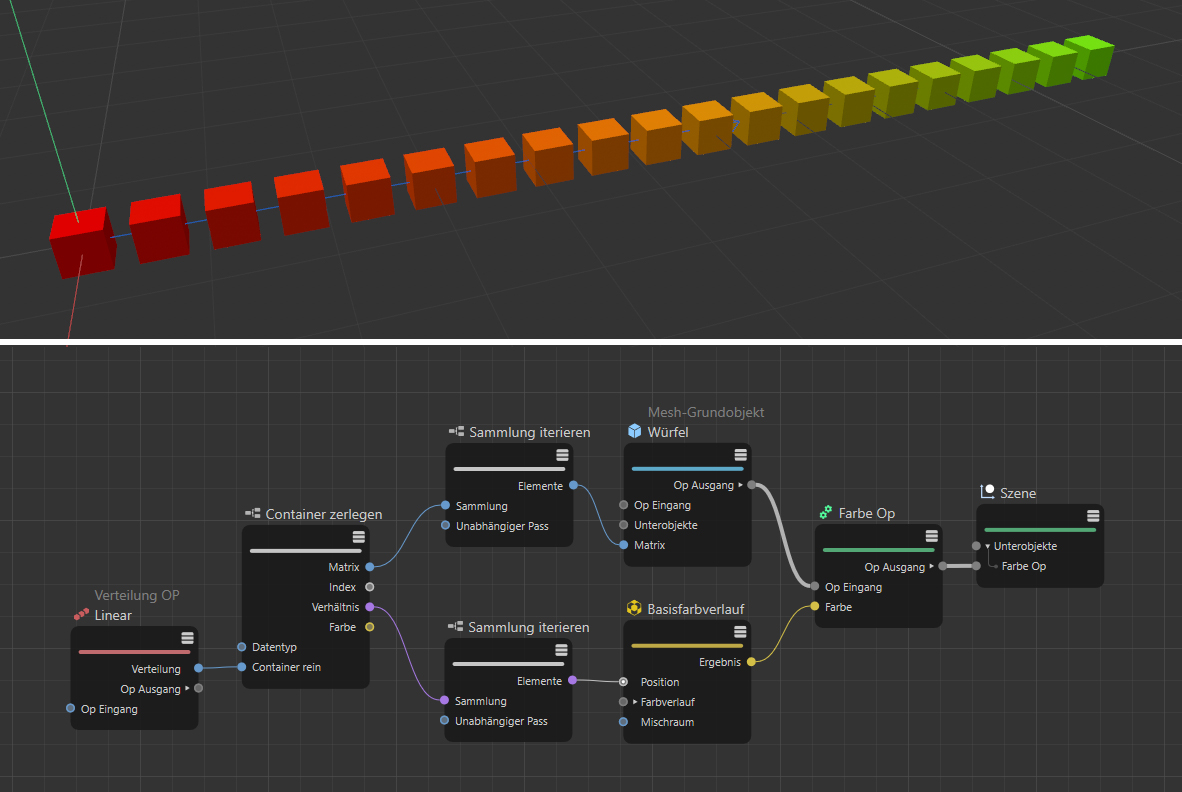 Hier wird der Container einer linearen Verteilung aufgeschlüsselt, um eine neue Farbverteilung zu berechnen.