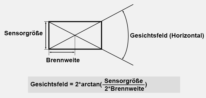 In Kombination mit der Brennweite ergibt sich dadurch der Parameter Gesichtsfeld (horizontal).