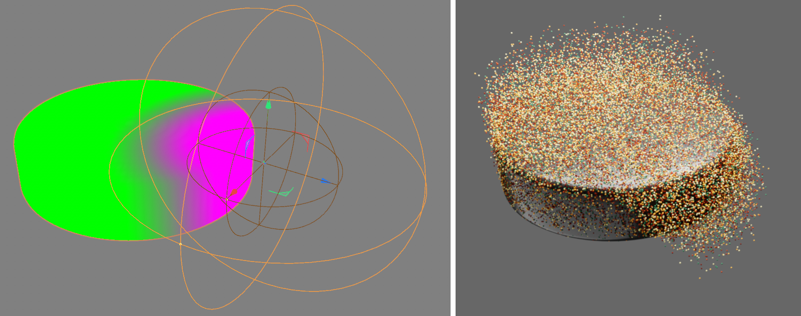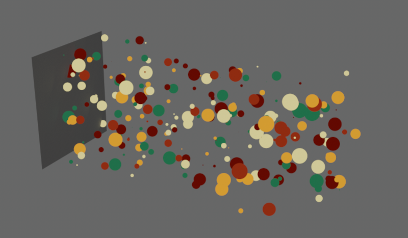 - Zufällig: Die Abgaberichtung der Partikel ist rein zufällig und somit unabhängig von der gewählten Emitterform.