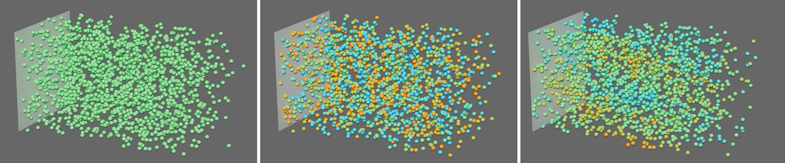 - Konstant: Die mit Farbe und Alpha eingestellten Werte werden allen Partikeln zugewiesen. Dies entspricht der Voreinstellung.