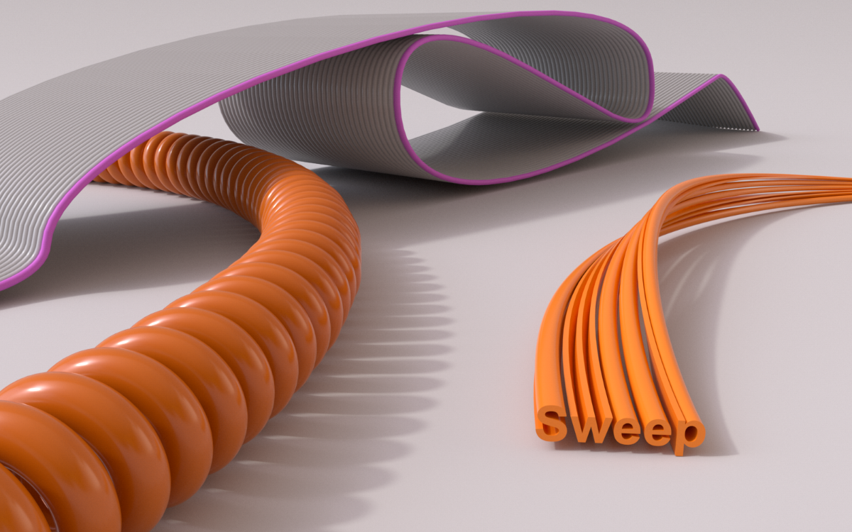 Das Sweep-Objekt (vergleichbar mit einem Pfad-Objekt oder Schlauch-Objekt) benötigt einen bis drei Splines. Der erste Spline (Kontur-Spline) bestimmt den Querschnitt der Schlauchhülle, das zweite bestimmt den Pfad, über den das erste Spline verschoben werden soll. Es kann außerdem zusätzlich noch ein weiteres Pfad-Spline verwendet werden – dieses nennt man dann Railspline. Anstatt eines Railsplines können sie aber auch die einfacher zu bedienenden, weiter unten beschriebenen Funktionsgraphen verwenden, die die wichtigsten Funktionen eines Railsplines bereitstellen.