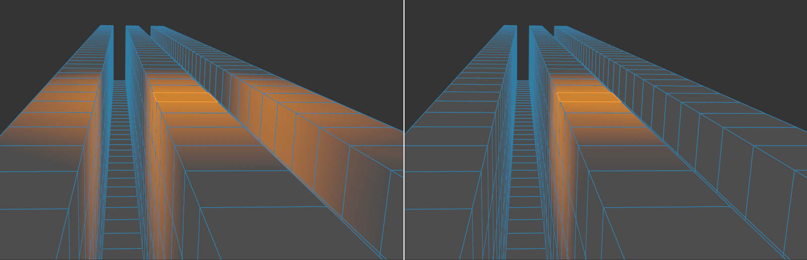 Sollten Sie diese Option aktiviert haben, wird nicht der komplette 3D-Raum des unter Radius definierten Bereichs beeinflusst, sondern nur ein oberflächenorientierter Bereich, mit dem sich filigrane Objektbereiche sehr viel besser bearbeiten lassen.