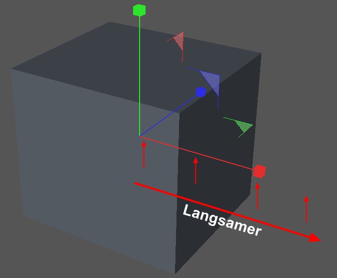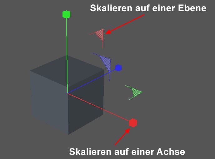 Indem Sie die Achsen mit der Maus anfassen, kann entlang dieser Achse skaliert werden.