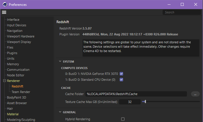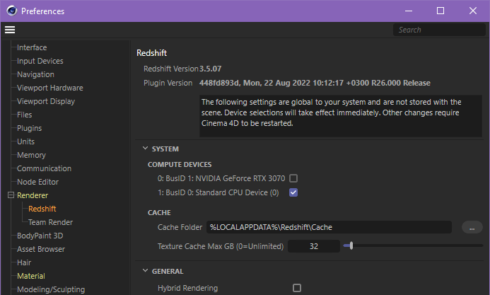 | In Cinema 4D, Redshift CPU can be configured in the Cinema 4D preferences panel under the Redshift renderer section. |