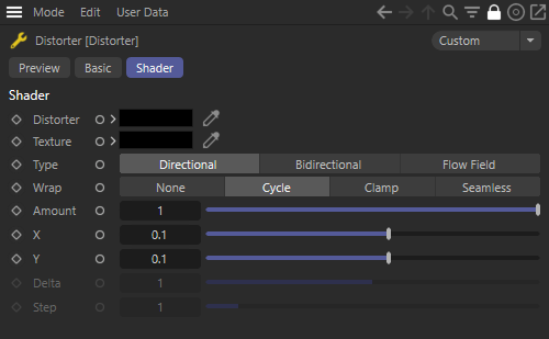| Distorter Wrap: None Source Texture Wrap: Disabled Distortion Amount: 0 to 3 |