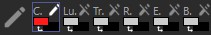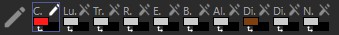 Active channels (i.e. the material channels which you can paint on) are marked by a colored pencil icon in the multi-channel palette. To activate or deactivate a channel, click the grayed out pencil icon. Note that the Material Manager also uses a pencil icon to indicate the (same) active channels — the selection is linked.