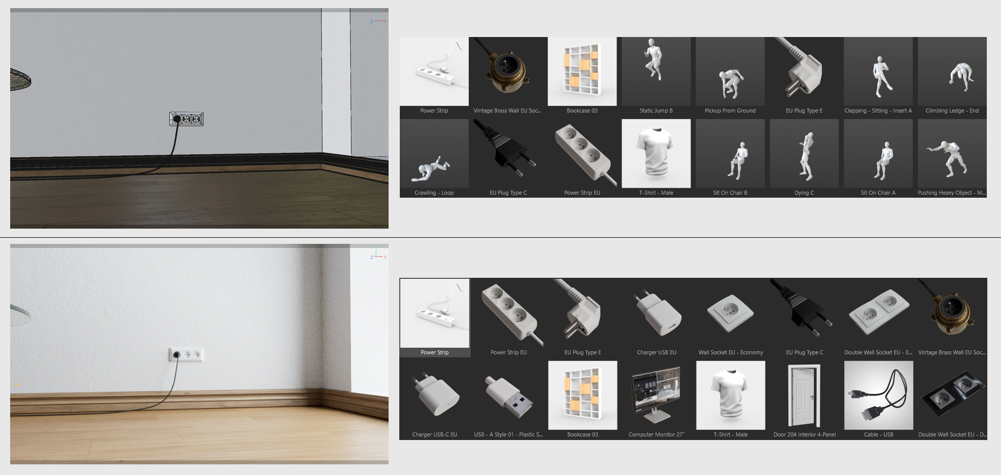 Same as above, except that the active viewport in Cinema 4D is used here. Depending on what is shown here, the corresponding assets are searched for. For example, if you have a kitchen scene and you zoom in on a fork, forks are searched for.