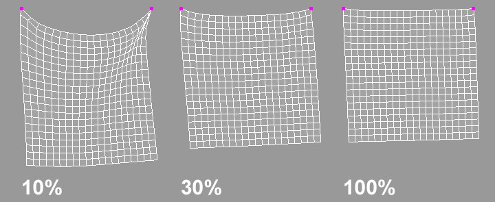 This vertex map defines where and how a cloth object's springs work. If Flexion is set to 50%, all points with a weighting of 100% will have a Flexion of 50%; all points with a weighting of 50% will have a Flexion of 25%.