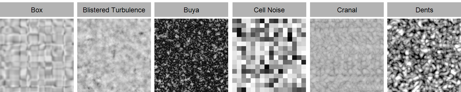 The calculation of the Noise pattern is based on this value. A change in the Seed value will also leads to a recalculation of the selected noise structure.