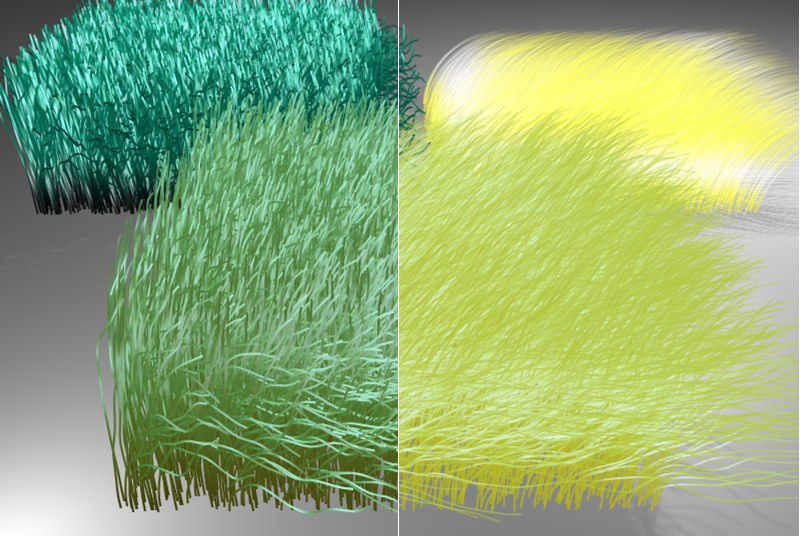 Other settings, such as the thickness of the hair, will not multiply their effect. If, for example, two Hair materials have their thickness set to 1m and 10m, respectively, the overall thickness of the hair will vary from 1m to 10m.