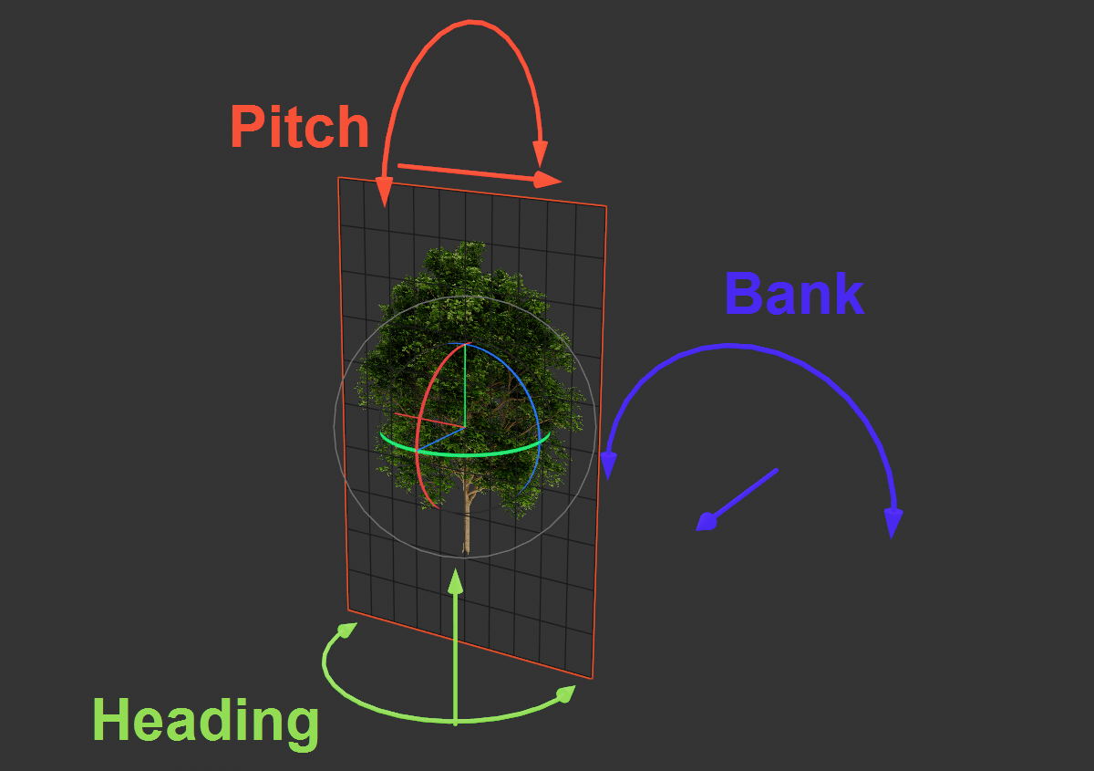 If you want to align an area with a tree, as shown in the example, it is advisable to leave both options deactivated, as the trees will then always stand vertically on the ground. Activate both options if the object surface should actually always be oriented vertically and frontally to the camera's viewing direction.