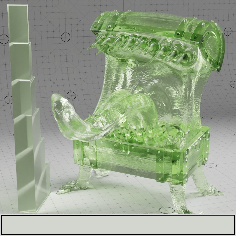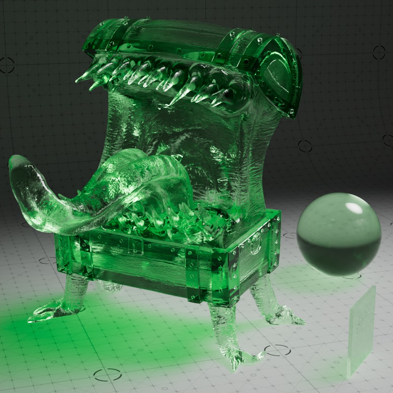 In the examples below, note how the final result is highly dependent on the location of the light source relative to the transmissive object. All examples showcase a transmission anisotropy from -0.8 to +0.8, positive values frequently lead to a more glassy appearance while negative values lead to a more frosted look.