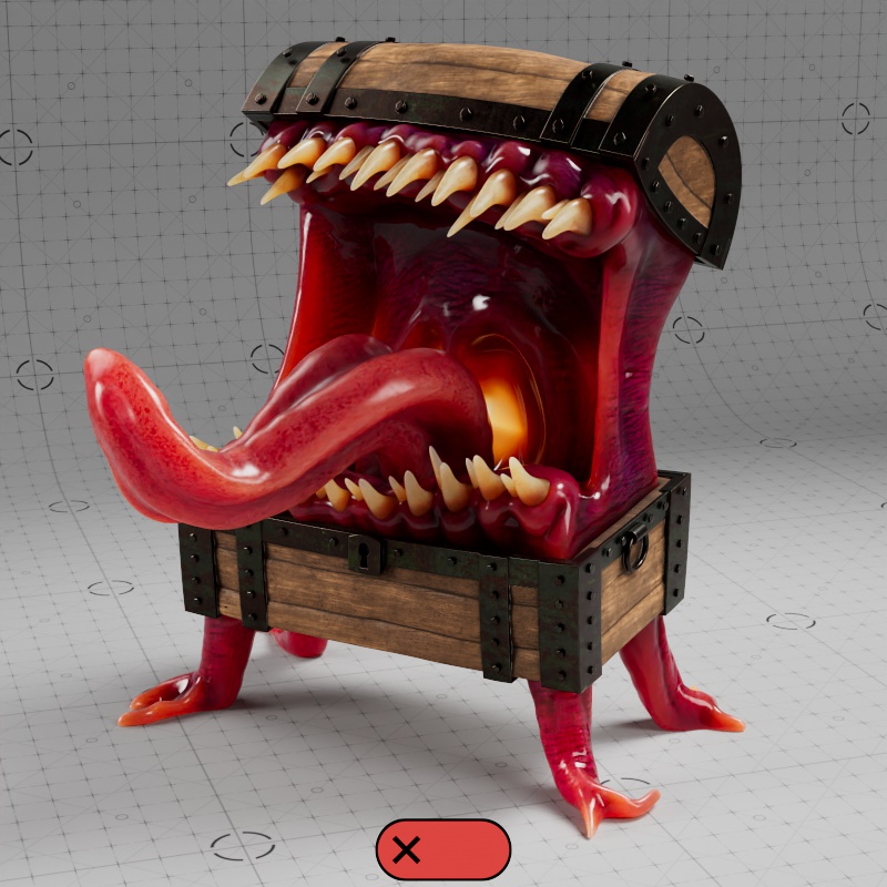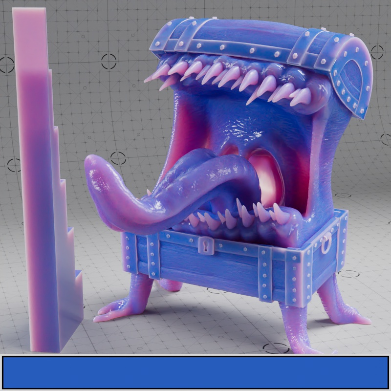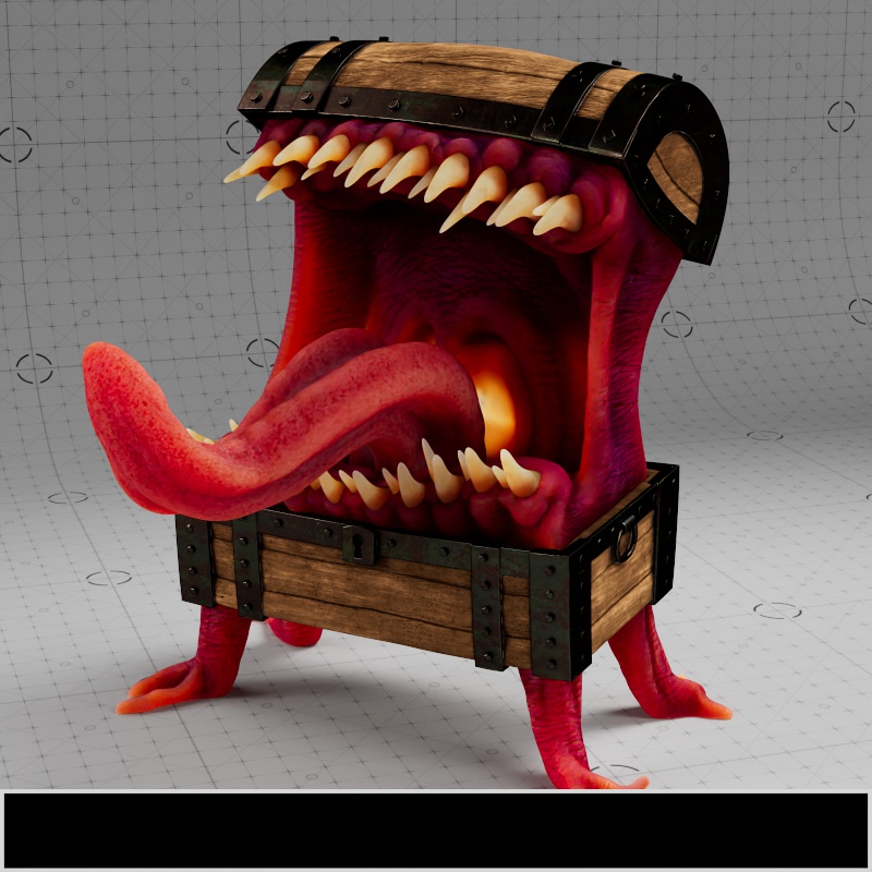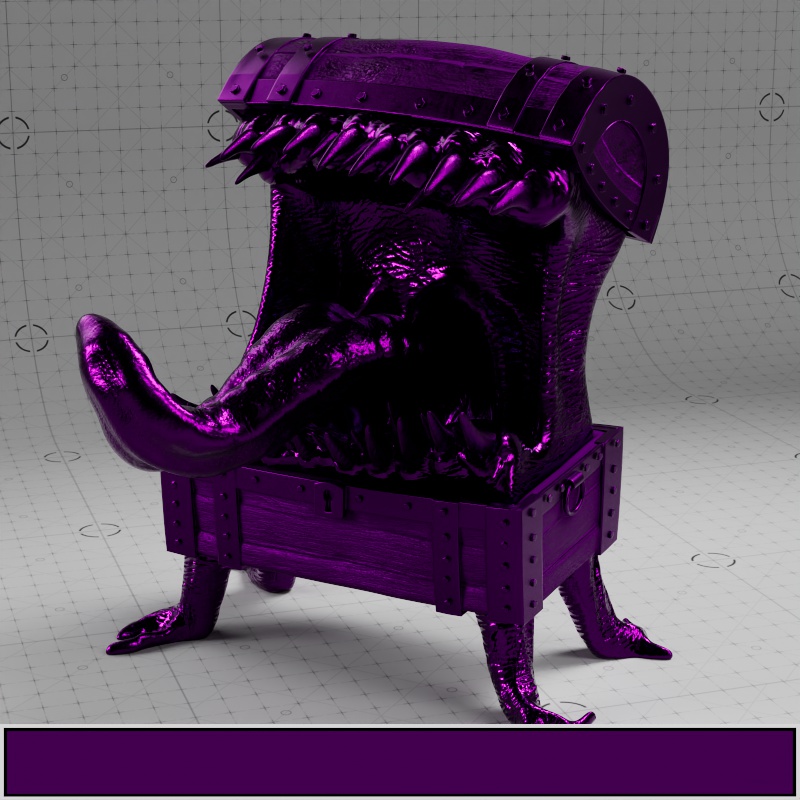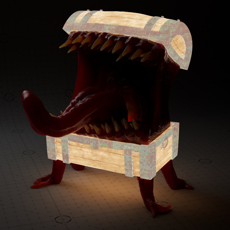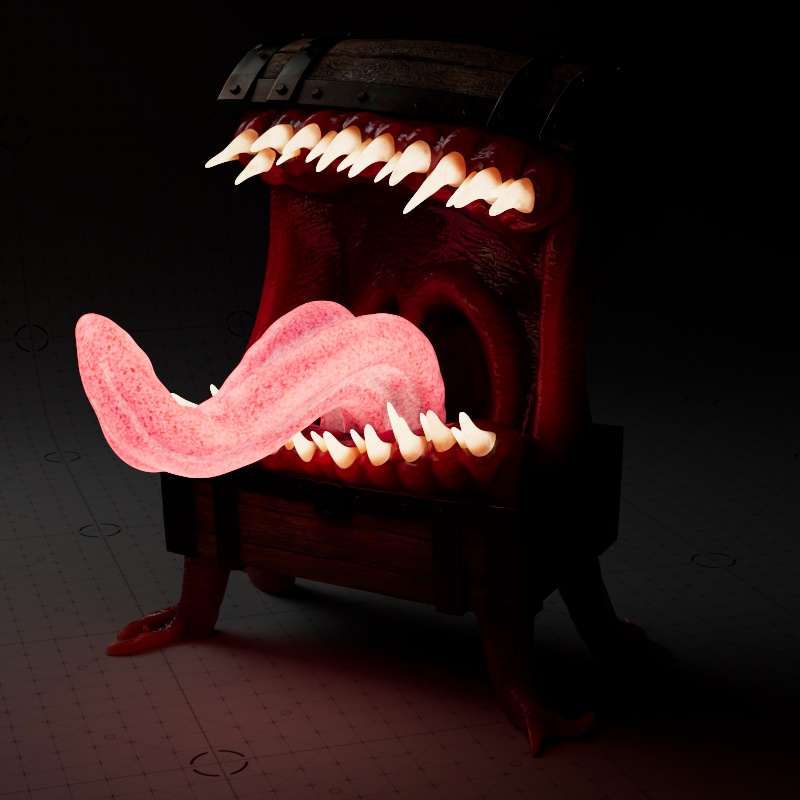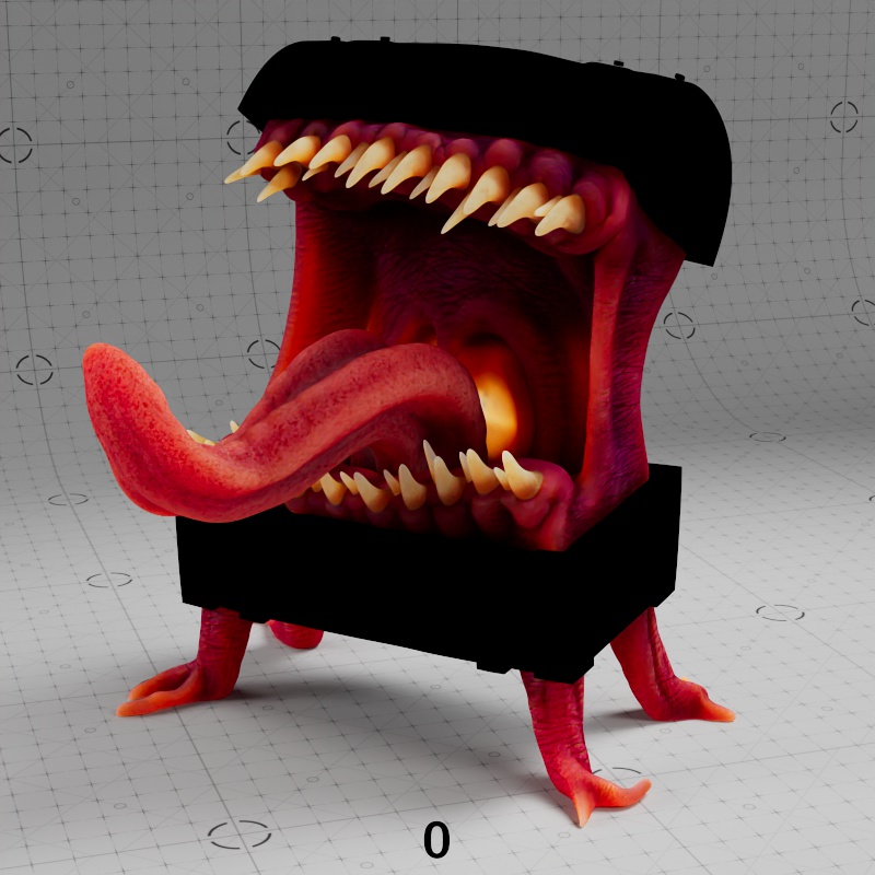In the examples using the full texture setup, only the Mimic's body, teeth, and tongue have subsurface scattering. Additionally, where metalness is used, no subsurface scattering can appear.