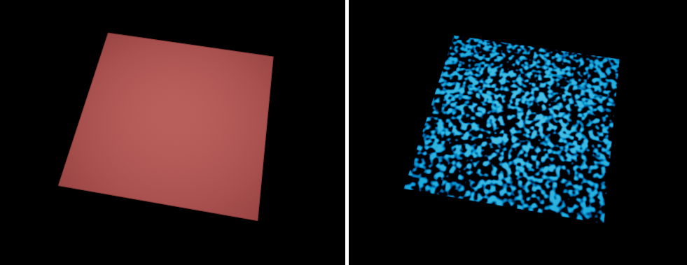 The base materials is shown on the left, the layered material is shown on the right.