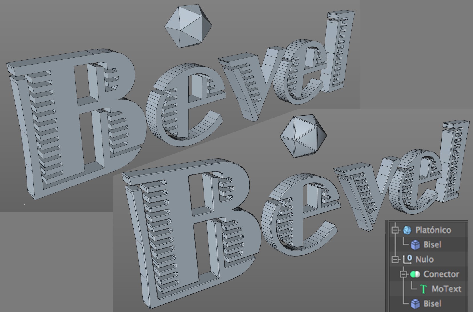 Incluso los objetos Texto pueden ser biselados (aunque sólo ligeramente).