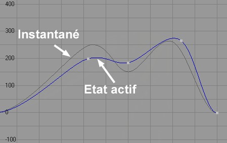 Les Courbes d'instantanés sont affichées en gris foncé et n'affectent pas l'animation, sauf si vous activez l'une d'elle via la commande Intervertir les instantanés (qui a également pour effet de désactiver la courbe active).