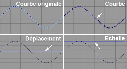 pour permettre le contrôle de la courbe originale. Ce fait est particulièrement apparent en modes Déplacement ou Mise à l'échelle.