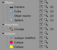 - Oeil : visibilité dans le gestionnaire d’objets.