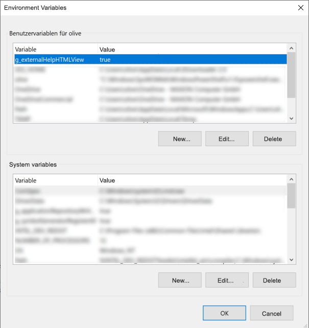 Sous Windows (aucune variable d'environnement ne peut être définie sous macOS pour des raisons de sécurité), cela ressemble à ceci :